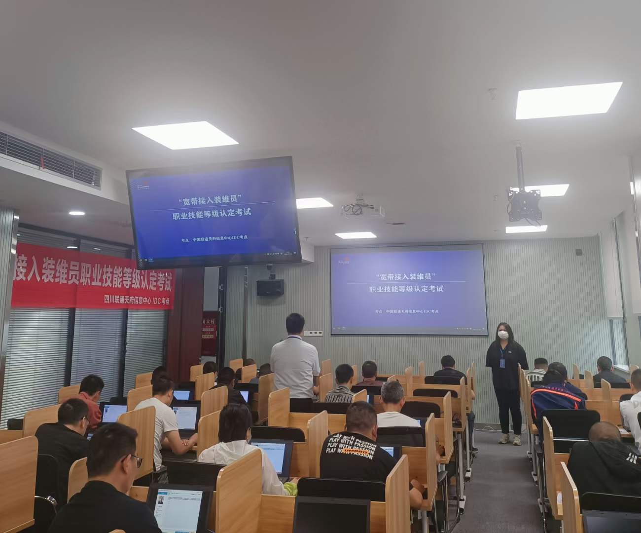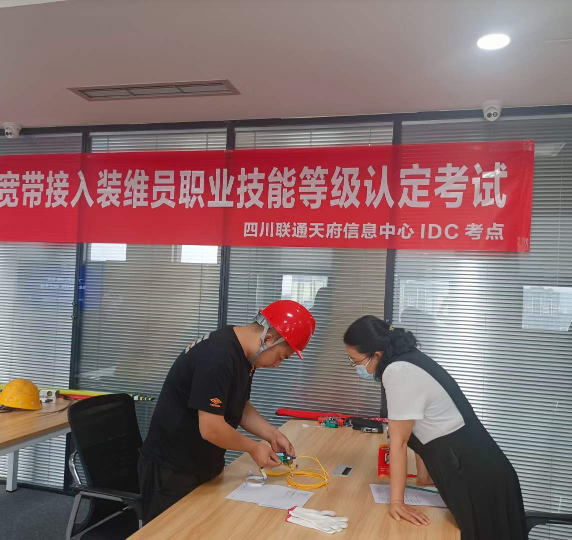 5月26日,联通天府信息中心(IDC考点)开展宽带接入装维员职业技能等级认定考试,为满足岗位需要,切实提高员工技能水平。将工作技能转变成专业技术,响应培育技术型人才的发展道路。